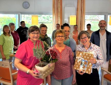 31.03.2026 Ein neuer Lebensabschnitt beginnt – Danke für die gemeinsame Zeit.Am 31.03. hatte unsere Mitarbeiterin in der Hauswirtschaft Corina Guretzka ihren letzten Arbeitstag. Sie tritt nach sechs engagierten Jahren im Stat. Hospiz nun in ihren Ruhestand. Fleißig, fröhlich, einfühlsam und zuverlässig haben wir sie in den vergangenen Jahren erlebt. Liebevoll hat sich Frau Guretzka um unsere Gäste gekümmert. Wir wünschen ihr alles Liebe und Gute für ihren Ruhestand und freuen uns jetzt schon auf ihren Besuch! |