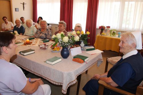 Es ist Freitag Nachmittag, kurz vor 16.00 Uhr. Im Mutterhaus ist Bewegung. In wenigen Minuten beginnt im Wohnzimmer der Wochenschluss, mit dem die Schwestern und Bewohner die zurückliegende Woche beschließen. Wer es sich einrichten kann, ist mit dabei, denn hier trifft sich in der Regel die Hausgemeinschaft. Im kleinen gottesdienstlichen Rahmen rund um den großen Wohnzimmertisch wird nicht nur gemeinsam gesungen und gebetet, auch wichtige Informationen werden weitergegeben, die das Leben im Mutterhaus, aber auch in ganz EMMAUS betreffen. Selbstverständlich ist das vergangene Wochengeschehen zentrales Thema und oftmals nutzen die Bewohner die Möglichkeit, aus ihrem persönlichen Erleben zu erzählen und einander an Freud und Leid Anteil zu geben. Da kommt es auch ab und an vor, dass das freitägliche Beisammensein gemütlich bei einem Gläschen Sekt oder einem guten Stück Schokolade beschlossen wird.