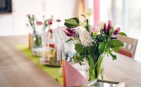 Die große gemütliche Wohnküche ist das Herzstück des Hauses. Der robuste Esstisch und die Couchecke laden ein, zu gemeinsamen Mahlzeiten, Gespräch und Begegnung.