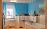 Für jeden Gast steht ein Einzelzimmer mit eigenem Bad, Telefon, Fernseher und überdachter Terrasse zur Verfügung. Die Türen zur Terrasse sind so breit, dass es auch möglich ist, mit dem Bett ins Freie zu fahren. Die Zimmer sind liebevoll eingerichtet und sofort bezugsfertig.