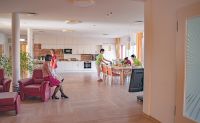 In der Küche trifft man die Mitarbeiterinnen der Hauswirtschaft an. Ob sie eine Mahlzeit vorbereiten, etwas reinigen oder Einkäufe sortieren- ihr ganze Arbeit dient dem Wohlbefinden unserer Hospizgäste!